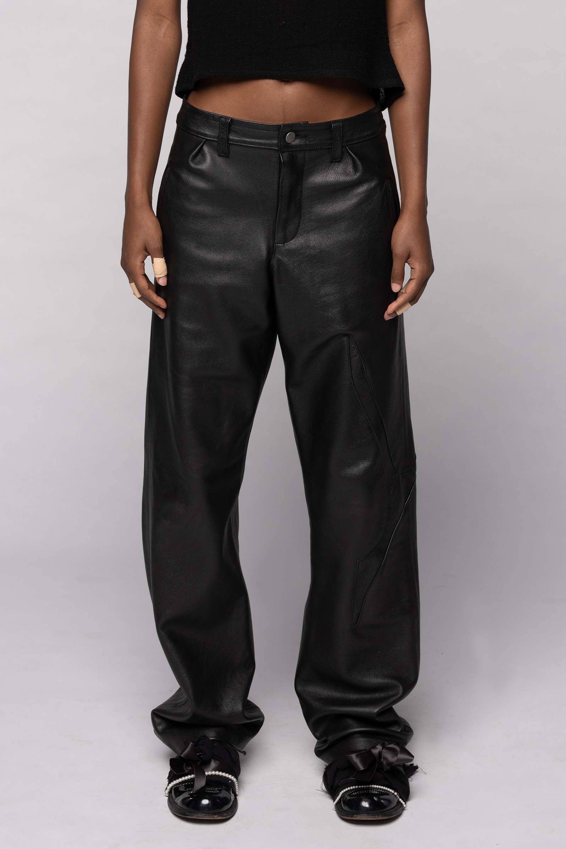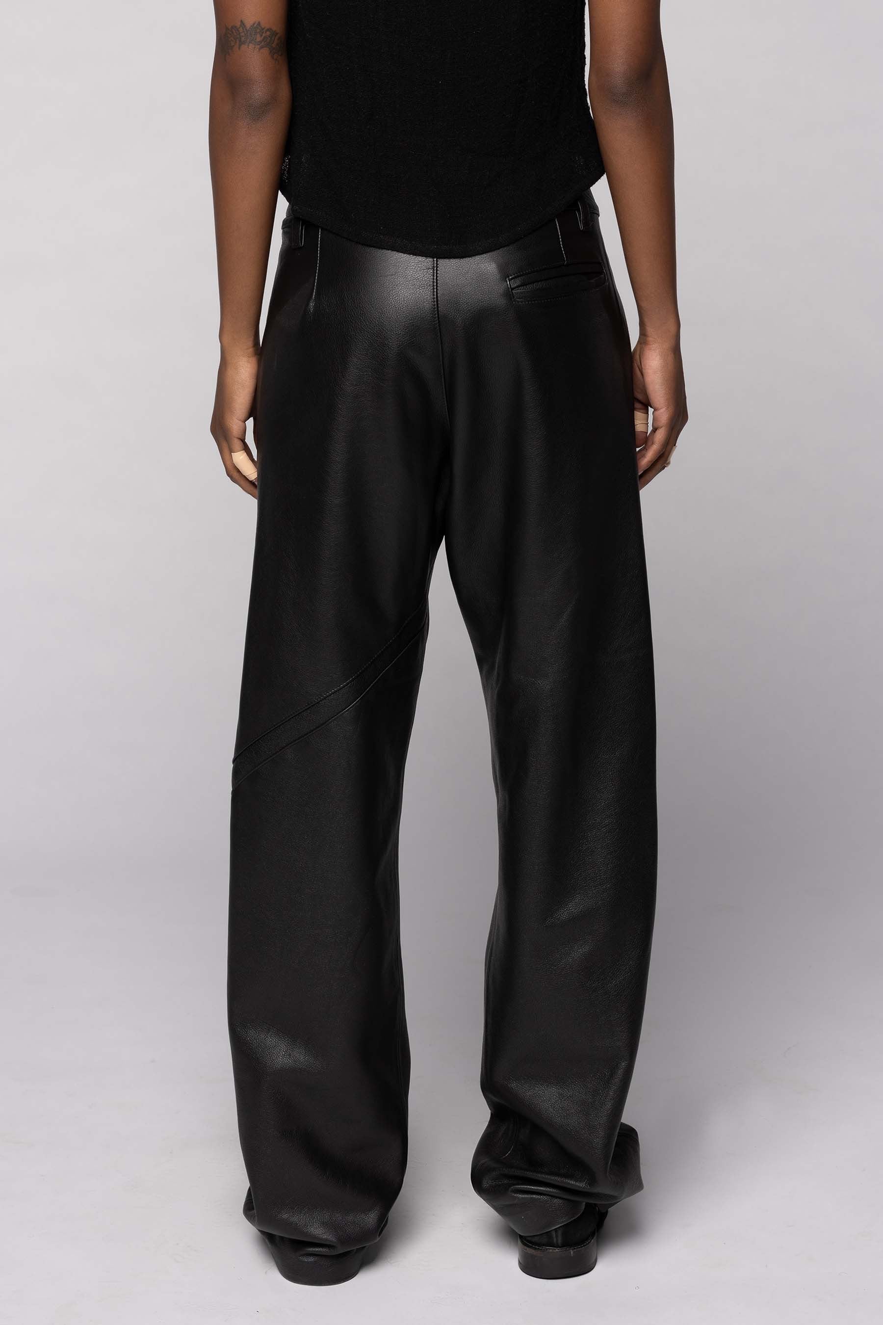 -Boot Cut Pant in Calf Leather. Riri Zipper Closure and Custom Metal Hardware. Made in Italy